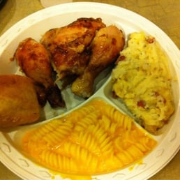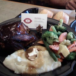 Haven't had Boston Market for years. Today I did because I had $5.00 each meal. The rotisserie Chicken, Mashed potatoes with gravity was delicious. The Mac and cheese was good but my friend and I noticed it was a little bit to much salty taste. The cashier was very friendly, nice and polite. She was very on point with washing her hands between handling money and making the Togo plate for customers. I'm disappointed that they don't have turkey and ham anymore. During holidays she mentioned only the ham will be available.